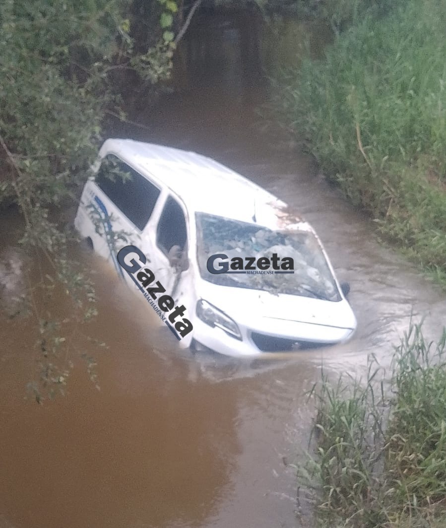 Uma van, pertencente a uma funerária local, capotou e caiu dentro de um rio, no bairro Ouvidor, nesta segunda-feira (16). Testemunhas afirmam que o condutor