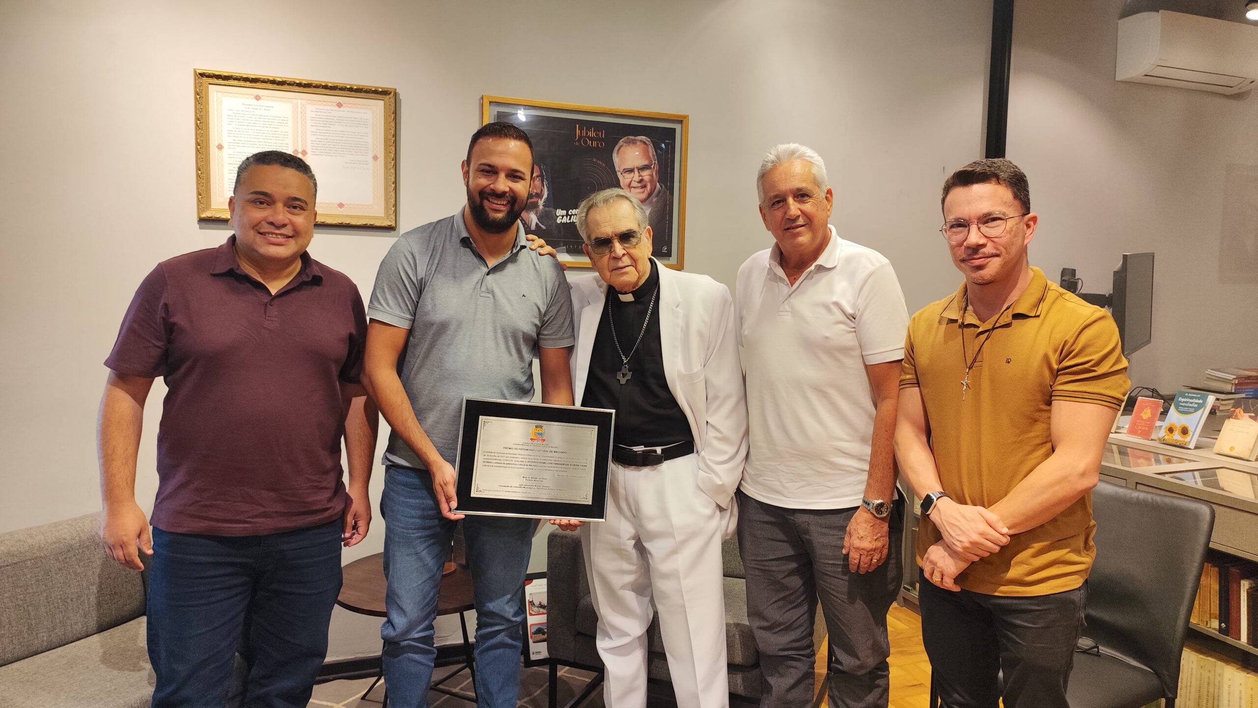 PREFEITO MAYCON WILLIAN ENTREGA PRÊMIO DO PATRIMÔNIO CULTURAL AO PADRE ZEZINHO, EM TAUBATÉ, NO INTERIOR DE SÃO PAULO