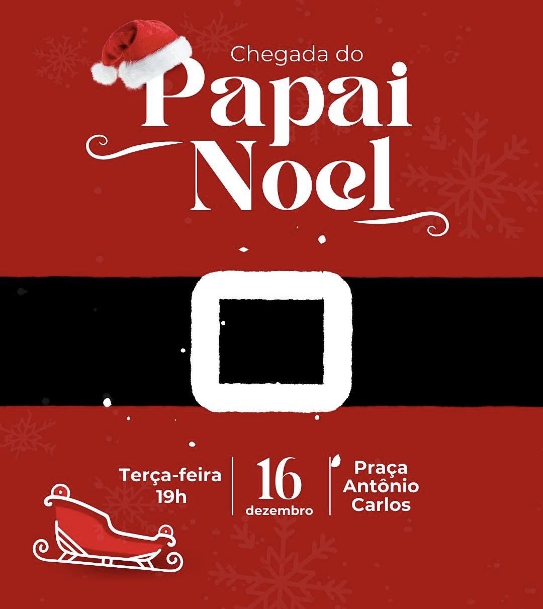 Machado entra no clima natalino com chegada do Papai Noel, neve artificial e decoração especial na Praça Antônio Carlos A magia do Natal já toma