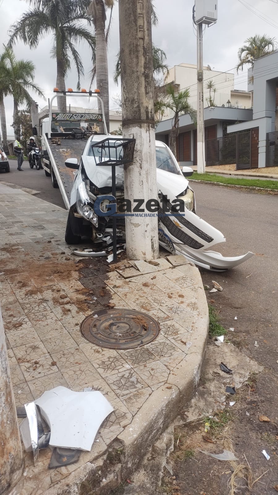 Uma mulher de 32 anos ficou levemente ferida após colidir o automóvel que conduzia contra um poste. O acidente se deu na manhã desta quinta-feira