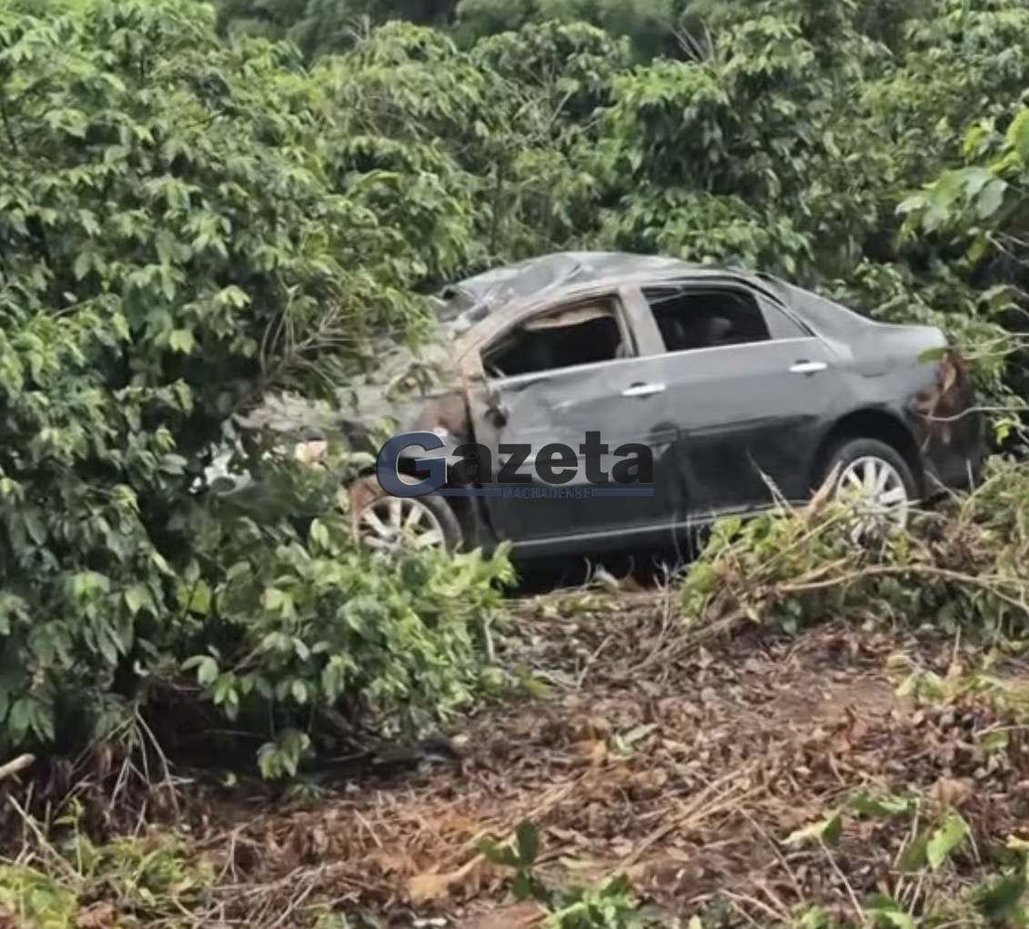 Um Toyota Corolla, com placas de Marília – SP, capotou no quilômetro 444 da BR 267, próximo à entrada do bairro Conceição, na manhã desta