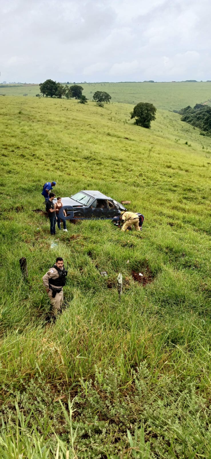 No local, o homem relatou que estava trafegando no sentido Machado – Paraguaçu, quando presenciou um Chevrolet Monza “passando reto” na rotatória que dá acesso ao distrito industrial e capotando em uma ribanceira de difícil acesso.
