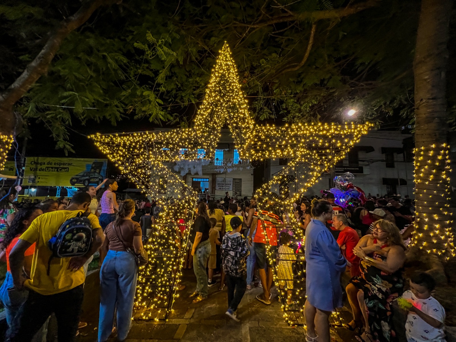 A chegada do Papai Noel, em desfile pela Carreta da Alegria, foi recebida com entusiasmo pelo público. A decoração especial e a iluminação da praça contribuíram para tornar o espaço ainda mais acolhedor, reforçando o clima de magia e celebração que tomou conta da cidade.