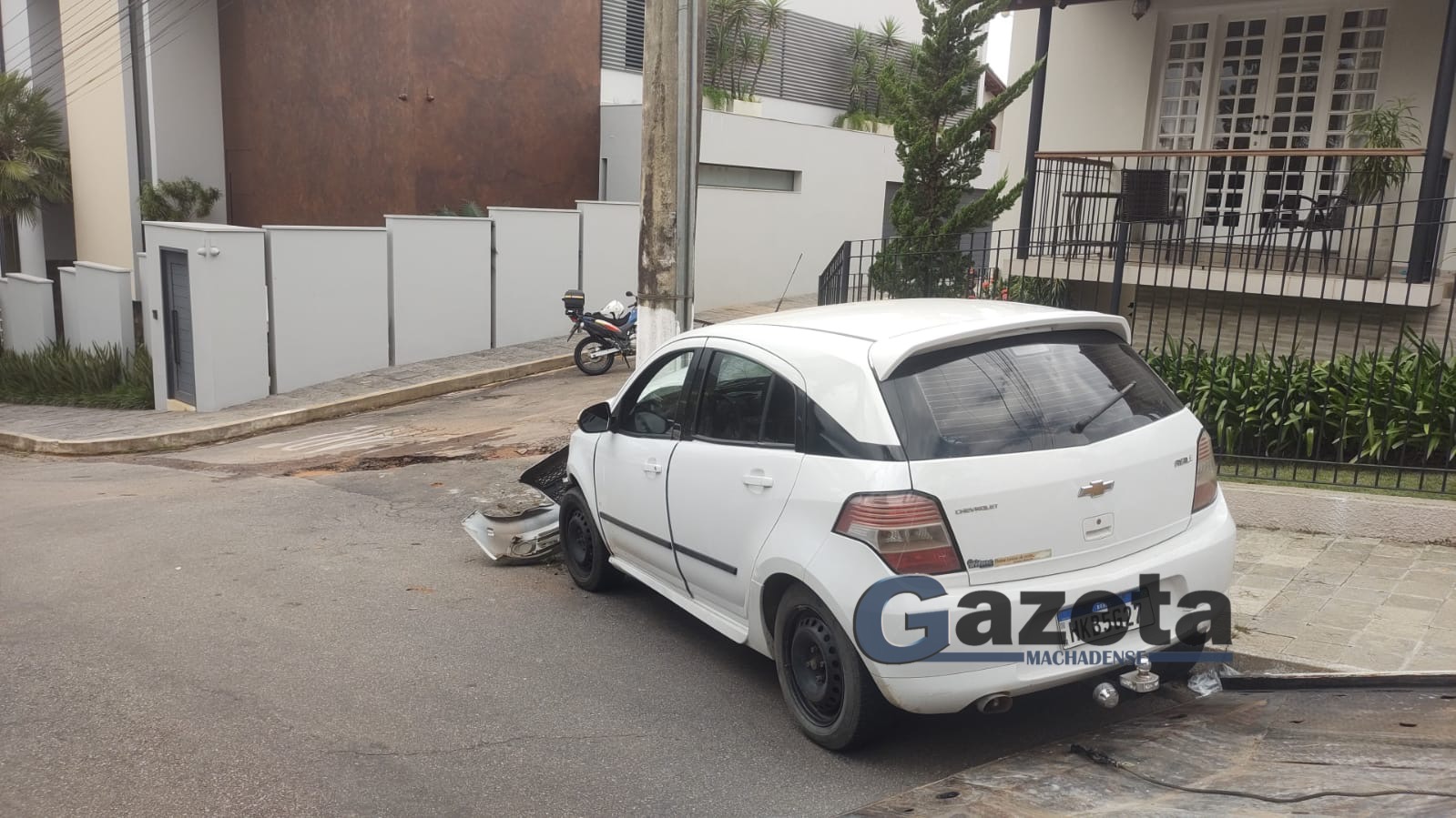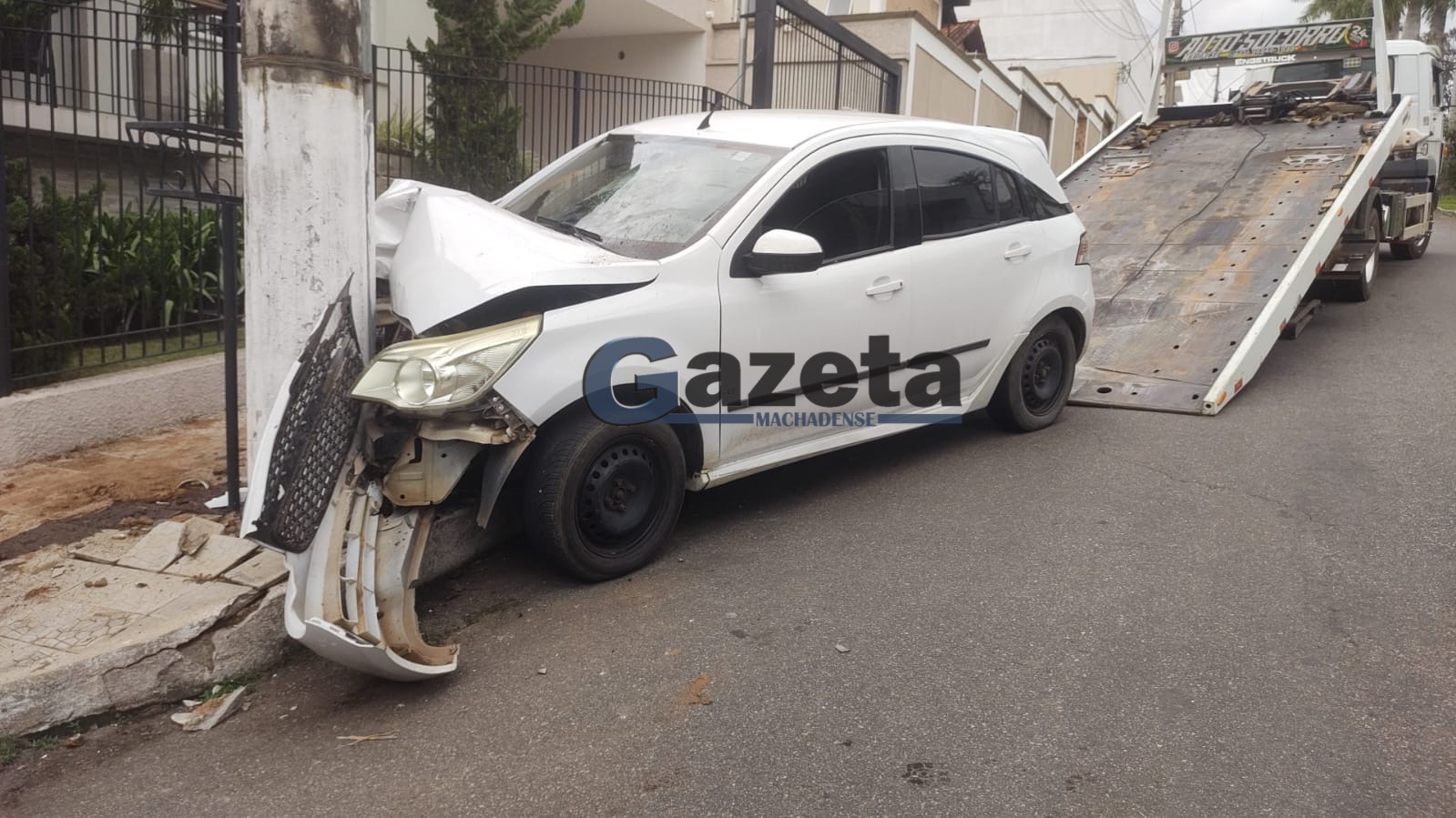 Uma mulher de 32 anos ficou levemente ferida após colidir o automóvel que conduzia contra um poste. O acidente se deu na manhã desta quinta-feira (26), na Avenida Oscar de Paiva Westin, no bairro Santa Helena. Uma criança de 1 ano e 6 meses de idade, filho da motorista, também estava no veículo.