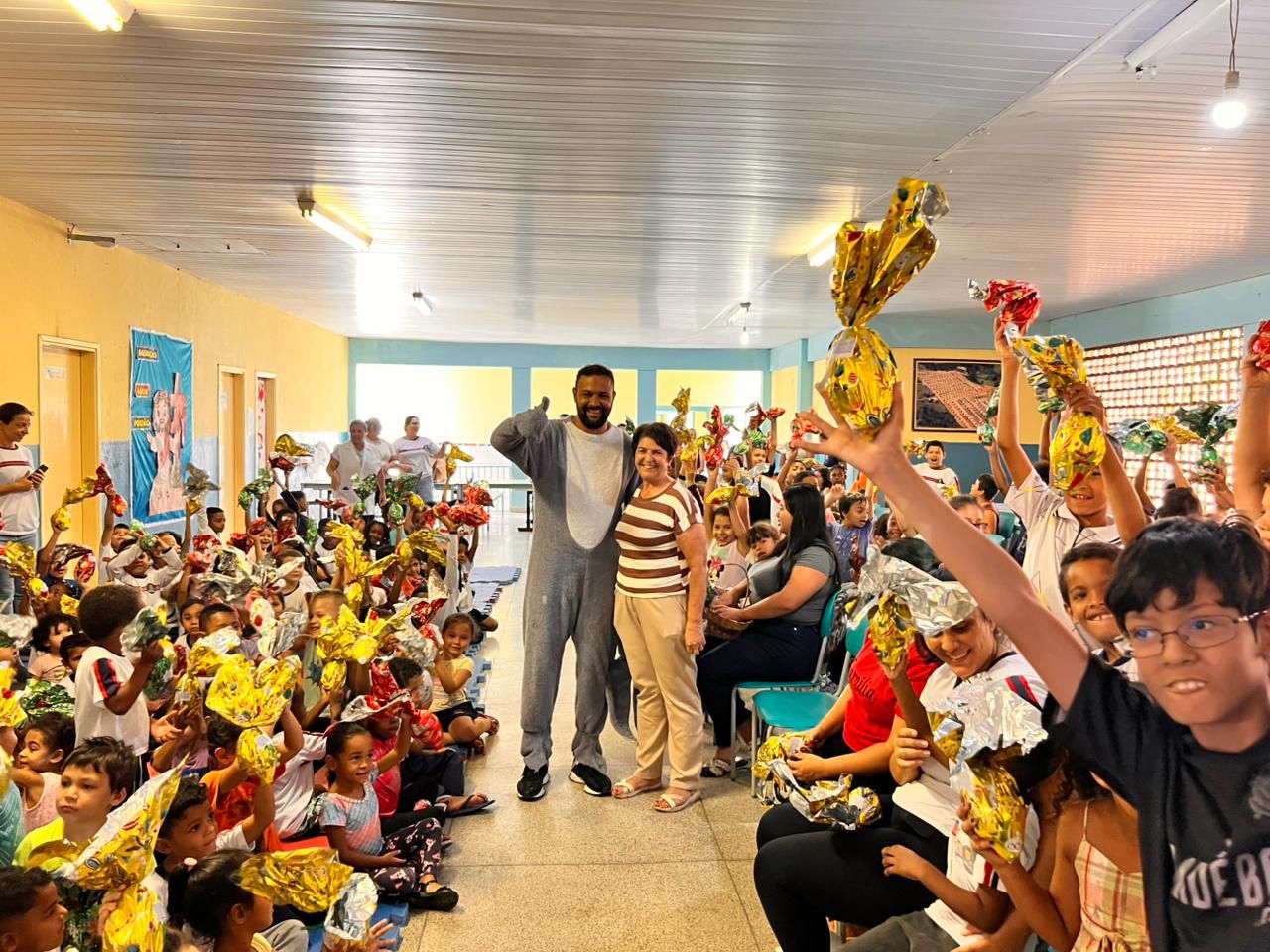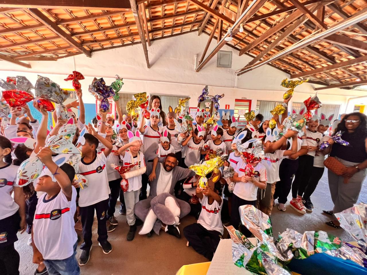 Para tornar a ocasião ainda mais especial, o prefeito Maycon Willian da Silva surpreendeu os estudantes ao chegar vestido de “Coelhão da Páscoa”, animando a criançada durante a entrega dos chocolates nas escolas. “Iniciativas como essa reforçam o compromisso da gestão em proporcionar não apenas a distribuição dos ovos, mas também experiências marcantes para os alunos”, ressaltou.
