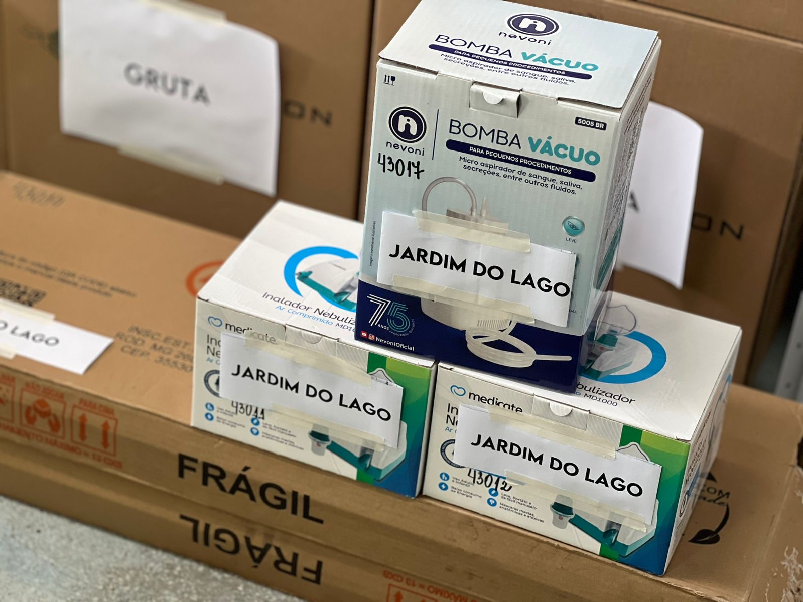 Entre as aquisições estão um gerador de energia, compressor odontológico, aspirador de secreção, inalador nebulizador, foto refletor, geladeira, micro-ondas, nobreak, além de estantes, armários de aço e arquivos com gavetas.