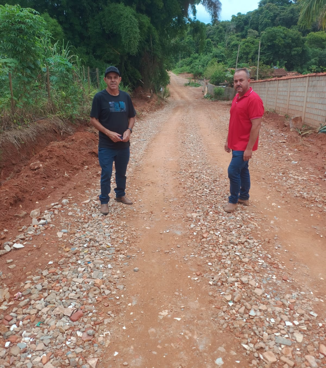 Ainda na referida comunidade, o presidente da Câmara e o representante do Executivo visitaram uma estrada recentemente cascalhada e que passou por reparos para melhor drenagem da água do leito da pista de rolamento.