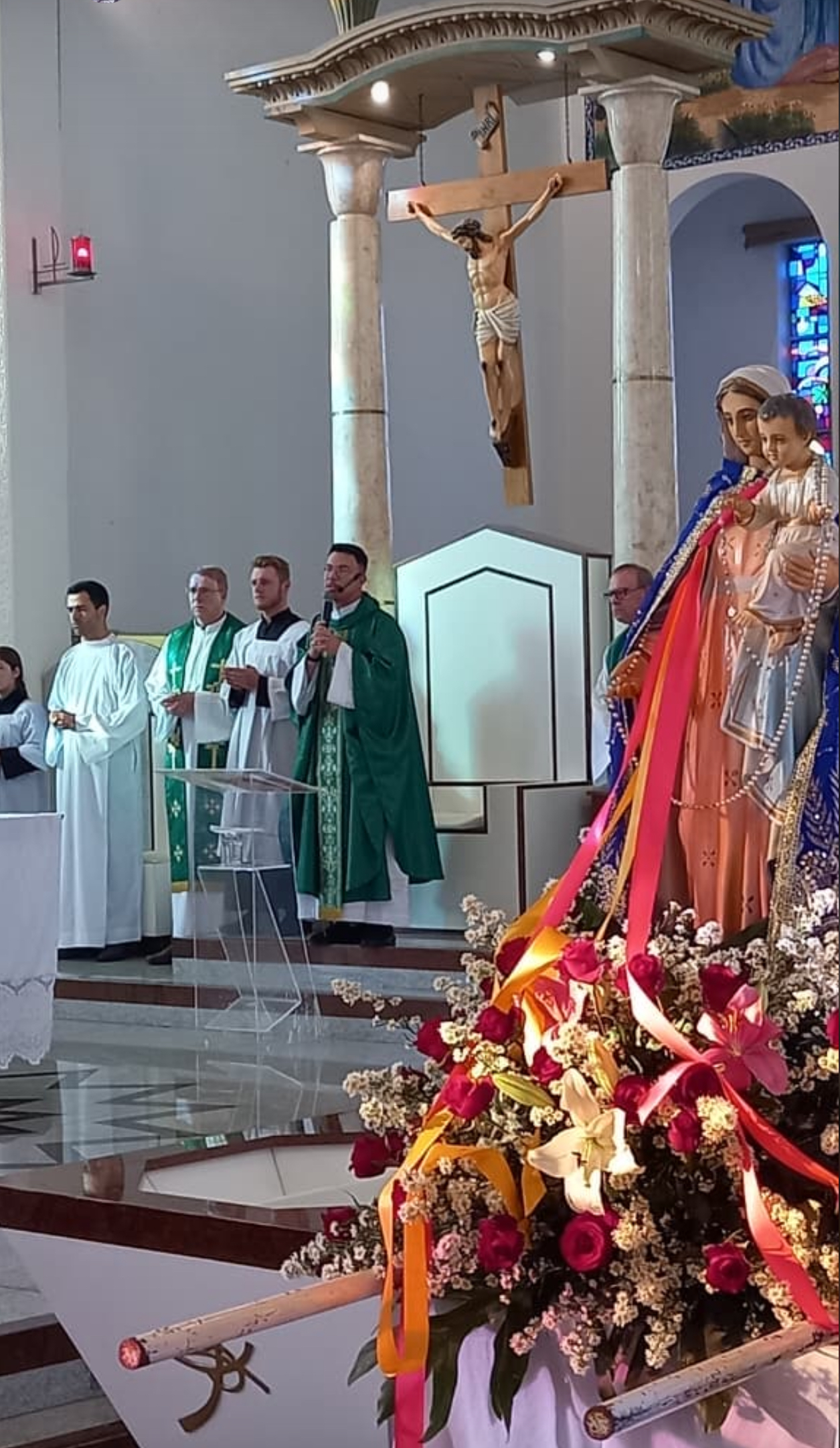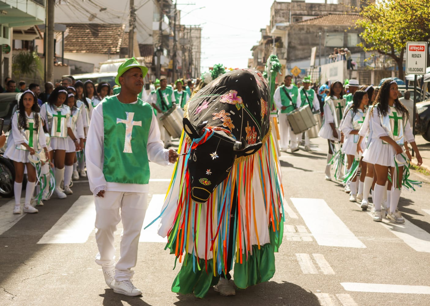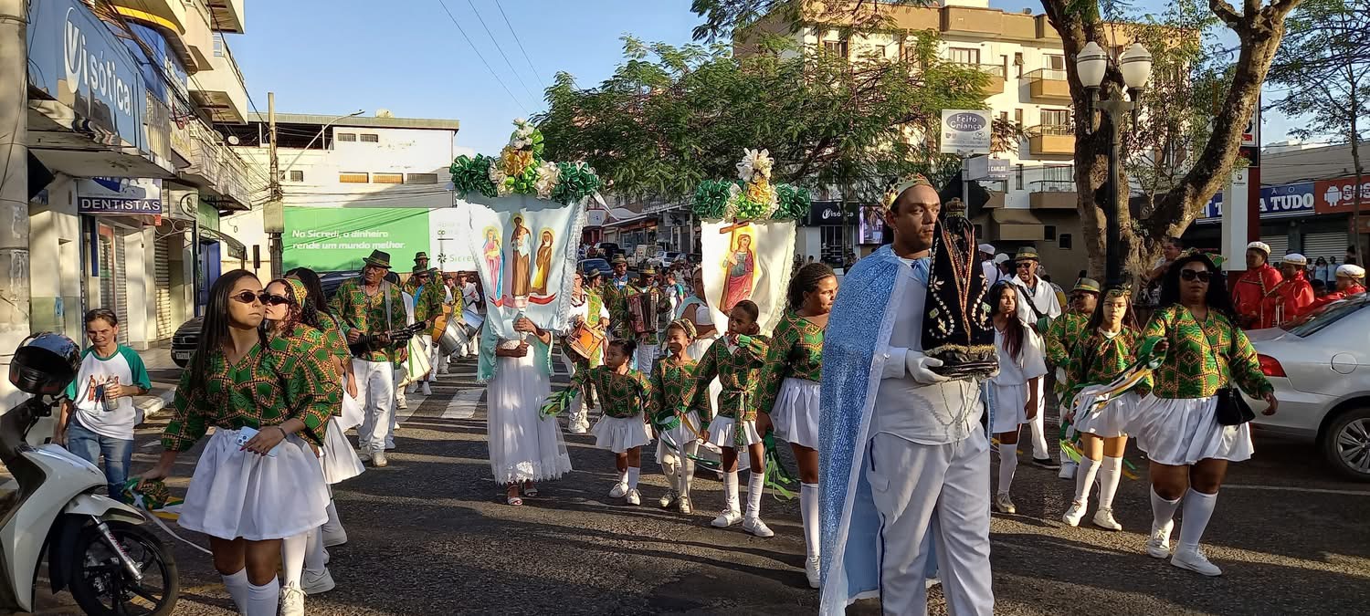 Os grupos saíram da Igreja Matriz da Paróquia Sagrada Família e Santo Antônio, seguindo para a sede da festa e arrastando grande número de pessoas pelas ruas da cidade. Na ocasião, como ocorre tradicionalmente, os festeiros de 2025, os casais Carlos Roberto e Eliane Domingues, Vinicius e Marta Carvalho, João Marcelo e Luciana Souza, Miriane e Juciel Serafini, passaram as coroas aos de 2026, que serão os cônjuges Florisberto Lucas e Maria Helena da Silva, Luiz Antônio e Edvirges da Silva, Marco Aurélio e Lídia Alves e Silvânio Pereira e Valdireni Serafini.