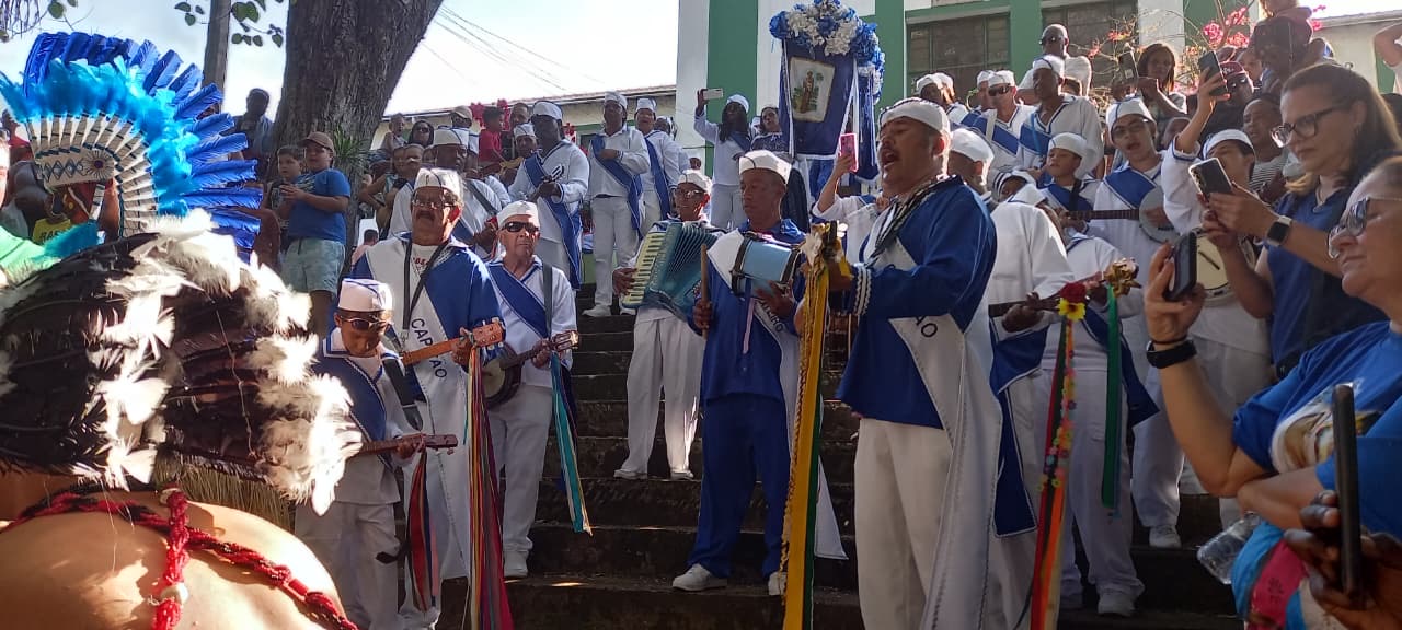 À tarde, a Praça de São Benedito ficou lotada de moradores e visitantes, que se aglomeraram para acompanhar o 11º Samba do Encontro, ao lado da Tenda do Congo. O evento, que, neste ano, contou com seis horas de samba, reuniu amigos, sambistas e machadenses ausentes para reviver o samba tradicional que, historicamente, animava as antigas barracas da festa.